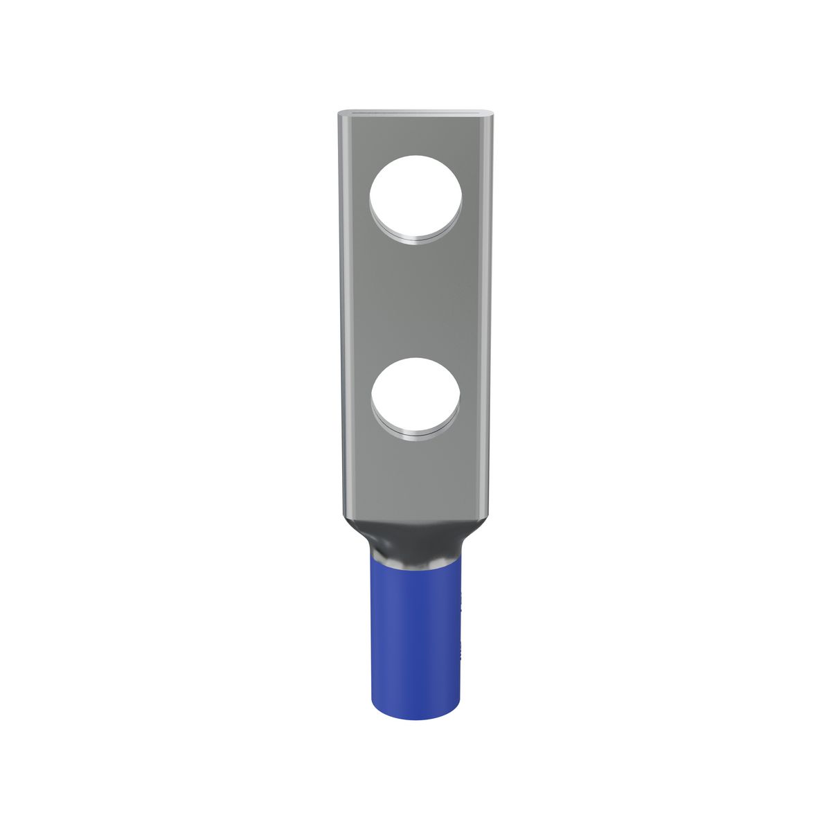 BURNDY® HYLUG™ Compression Connector Lug, 2-Hole, Series: YA-C-2L, Stranded Copper Conductor, 6 AWG Conductor, Die Code: 7/374, 600 VAC to 35 kV, 1/4 in Stud, Straight Tongue, 0.45 in W x 0.08 in THK Tongue, 2.01 in Overall Length, Chamfered/Short/Skived/Standard Barrel, 0.29 in OD x 0.54 in L Barrel, 5/8 in L Wire Strip, 5/8 in Stud Hole Spacing, Electro-Tin Plated, 90 deg C, Copper, Blue