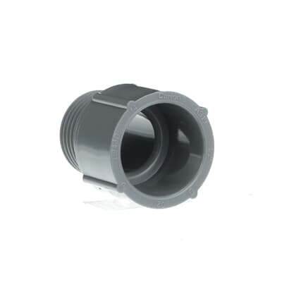 Carlon®, E943D, Terminal Adapter, Non-Metallic, 1/2 in Size, Male x Socket Thread, For Use With: SCH 40 and SCH 80 Conduit, PVC, Gray, 0.594 in ID x 1.042 in OD x 1.31 in L Dimensions
