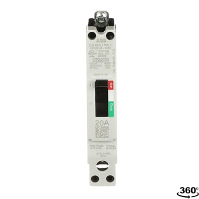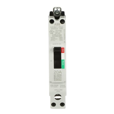 GE Lighting Panel Circuit Breaker, Compact, Series: TEYH, 120/240/277/480 VAC, 125 VDC, 20 A, 50/60 Hz Frequency, 35/65 kA Interrupt, TEYH Frame, LI/Non-Interchangeable/Thermal Magnetic Trip, 1 Pole, 1 ph, Handle Actuator, Saddle Clamp Connection, 14 to 10 AWG Wire, Bolted-On Mounting, 40 deg C, 1 in W x 3-1/16 in D x 5-1/4 in H Dimensions, Plastic