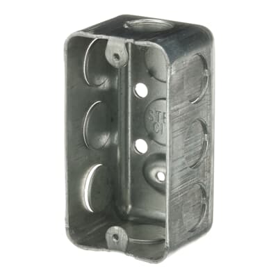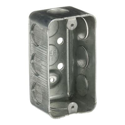 - Steel City Utility Box, Drawn Style, 1 Outlets, 1 Gangs, 10 Knockouts, 1/2 in Knockout, Knockout Cable Entry, Nail-On/Screw-On Mounting, 13 cu-in Capacity, Steel, Pre-Galvanized, Silver, 4 in L x 2-1/8 in W x 1-7/8 in D Dimensions