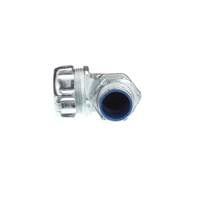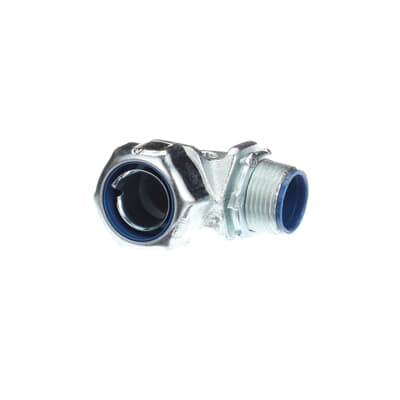 - T&B® Industrial Fitting Safe Edge® Liquid Tight Conduit Connector, Insulated, Series: 53, 3/4 in Trade, 90 deg Angle, For Use With: Liquid Tight Flexible Metal Conduit Fitting, Malleable Iron, Chromate Coated/Electro-Plated Zinc