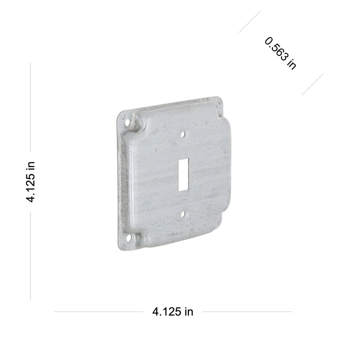 RACO®, 800C, Exposed Work Cover, 1 Outlets, 1 Gangs, 4-1/8 in Length, 4-1/8 in Width, 1/2 in Depth, 0.563 in Thickness, Squared Shape, Toggle Switch Cover, Surface Mounting, 6.5 cu-in Capacity, Steel, Pre-Galvanized/Unpainted, Silver