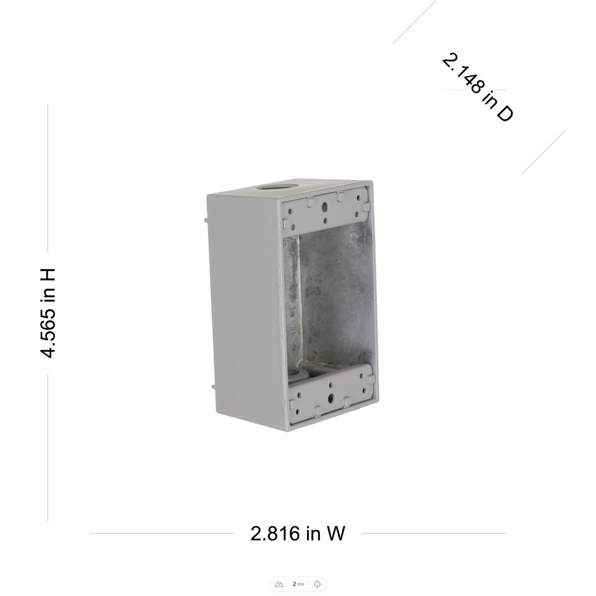 - BELL® Weatherproof Outlet Box, 3 Outlets, 1 Gang, 1/2 in Hub, Threaded Hub, Back/End Cable Entry, NEMA 3R, Surface Mount, 18.3 cu-in, Die Cast Aluminum, Powder Coated, Gray, 4-1/2 in L x 2-3/4 in W x 2 in D