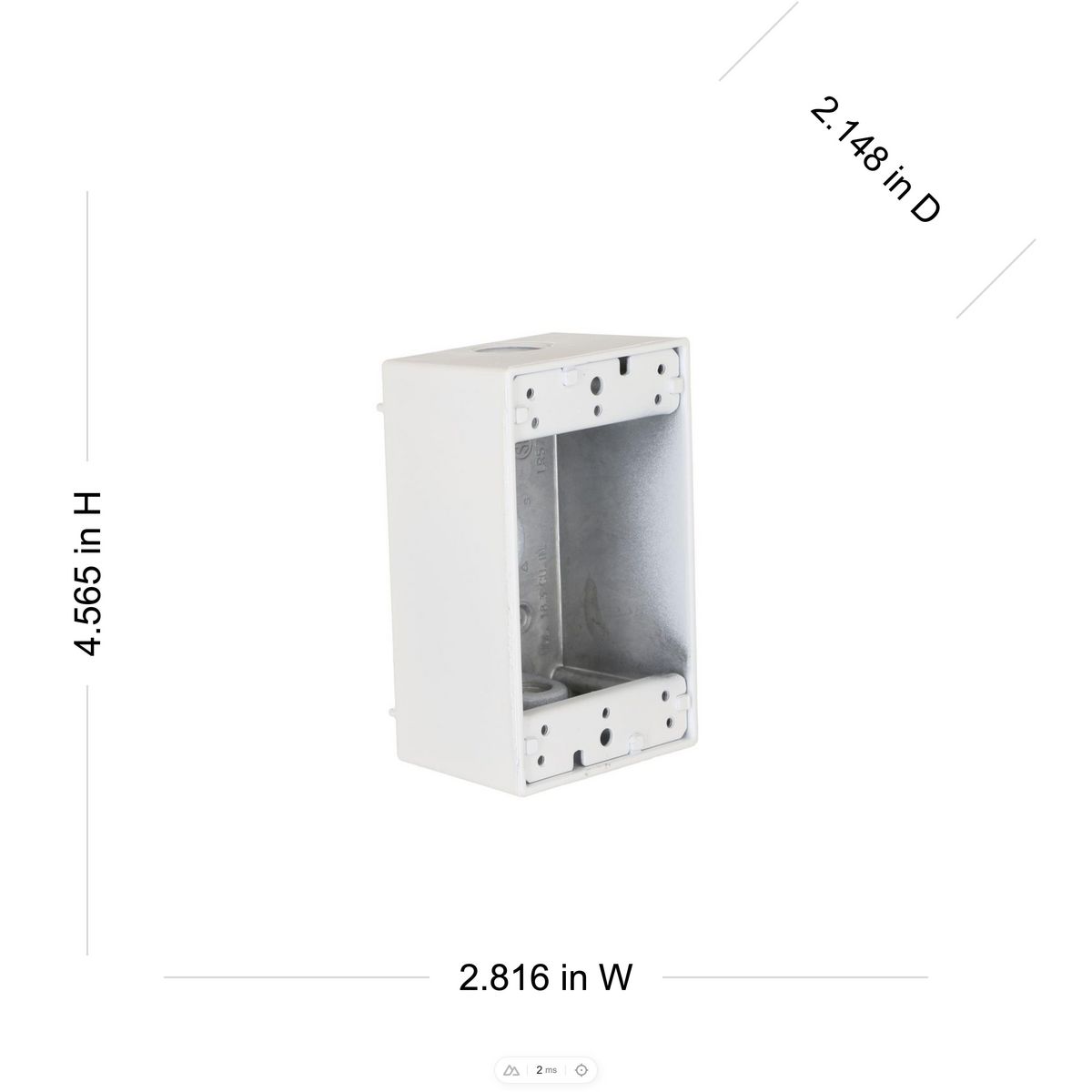 - BELL® Weatherproof Box, 3 Outlets, 1 Gang, 1/2 in Hub, Threaded Hub, NEMA 3R, Surface Mount, 18.3 cu-in, Die Cast Aluminum, Powder Coated, White, 2-3/4 in W x 2 in D x 4-1/2 in H