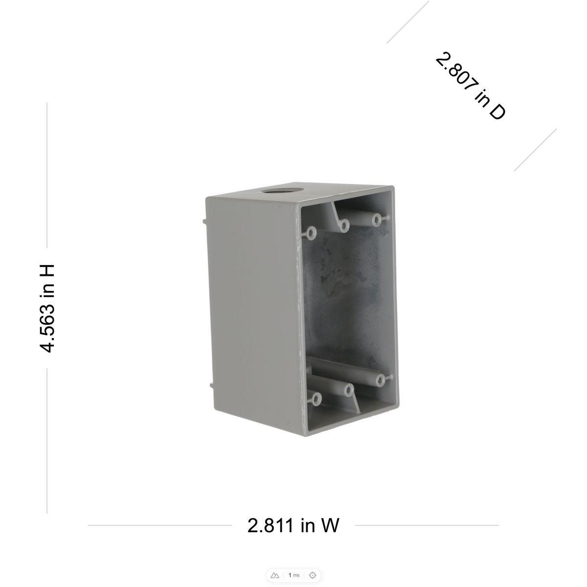 - BELL®, 5385-0, Weatherproof Outlet Box, Deep, 3 Outlets, 1 Gangs, 1/2 in Hub, Threaded Hub, Back/End Cable Entry, NEMA 3R Enclosure, Surface Mounting, Vertical Mounting, 22.5 cu-in Capacity, Die Cast Aluminum, Powder Coated, Gray, 4-1/2 in H x 2-3/4 in W x 2-5/8 in D Dimensions