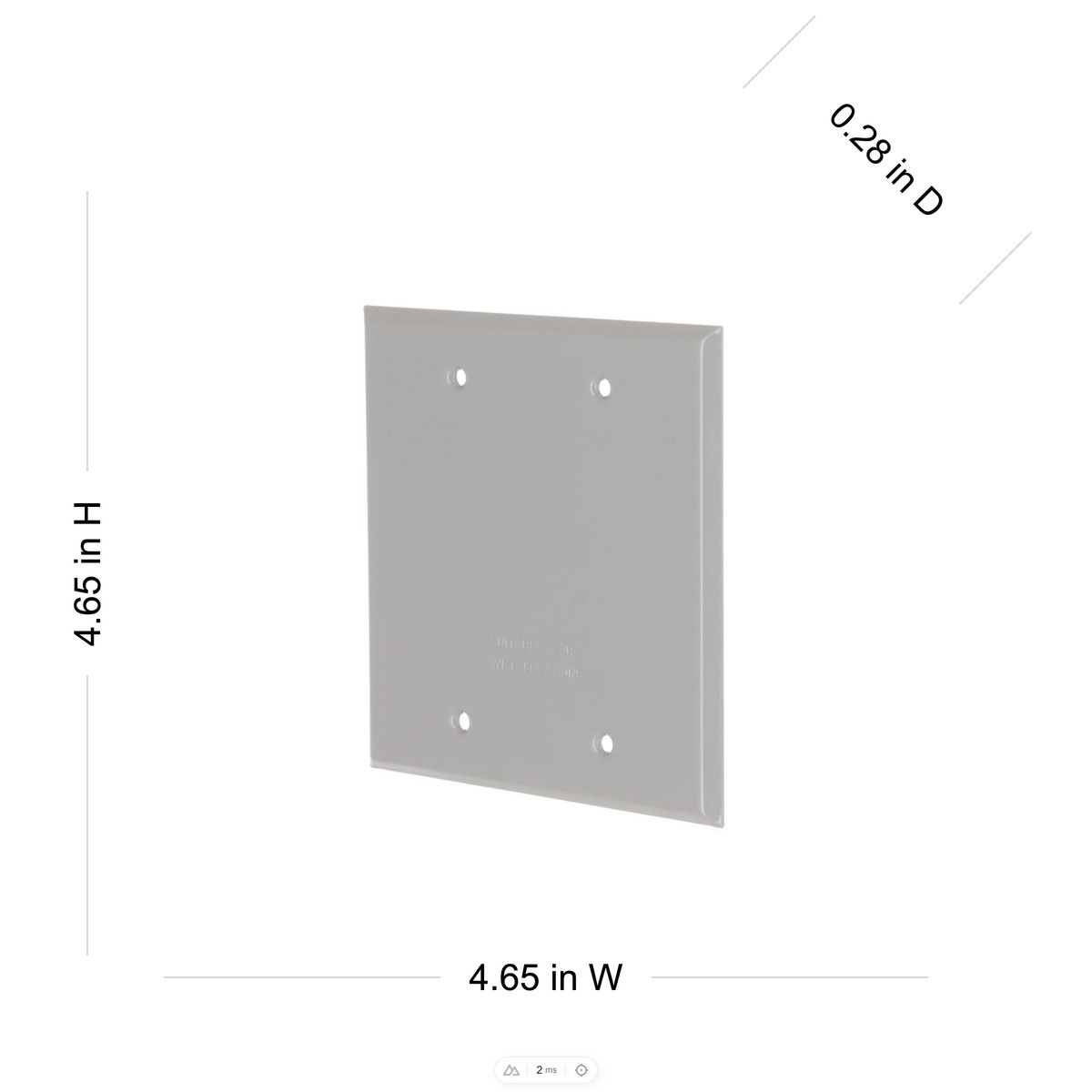 - BELL Weatherproof Blank Cover, 2 Gangs, 4-1/2 in Length, 4-1/2 in Width, Squared, Surface Mount, Die Cast Aluminum, Powder Coated, Gray