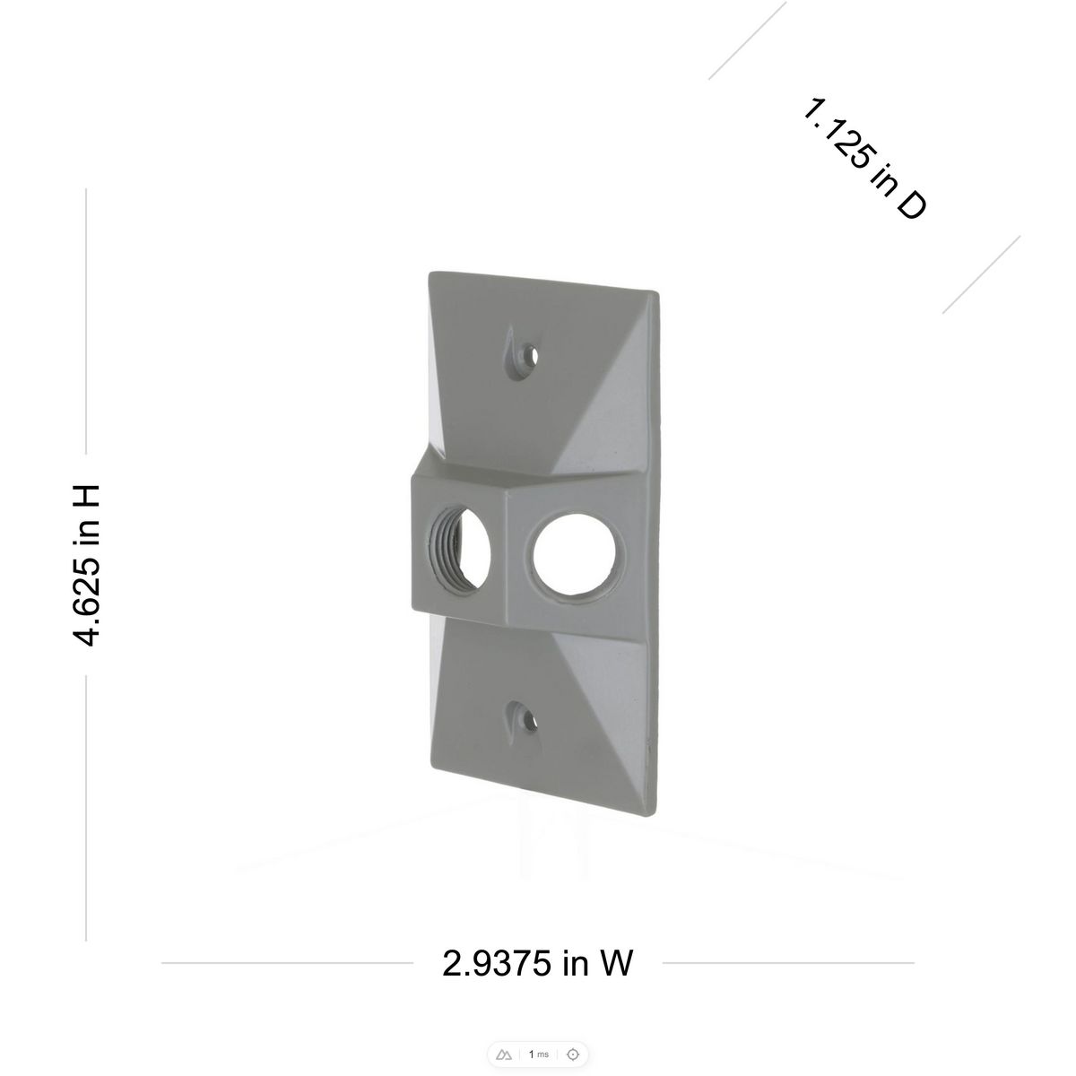 BELL®, 5189-0, Cluster Cover, Weatherproof, 3 Outlets, 1 Gangs, 2-27/32 in Length, 4-19/32 in Width, 1.063 in Depth, Rectangle Shape, Lampholder/Cluster Cover, Surface Mounting, Die Cast Aluminum, Powder Coated, Gray