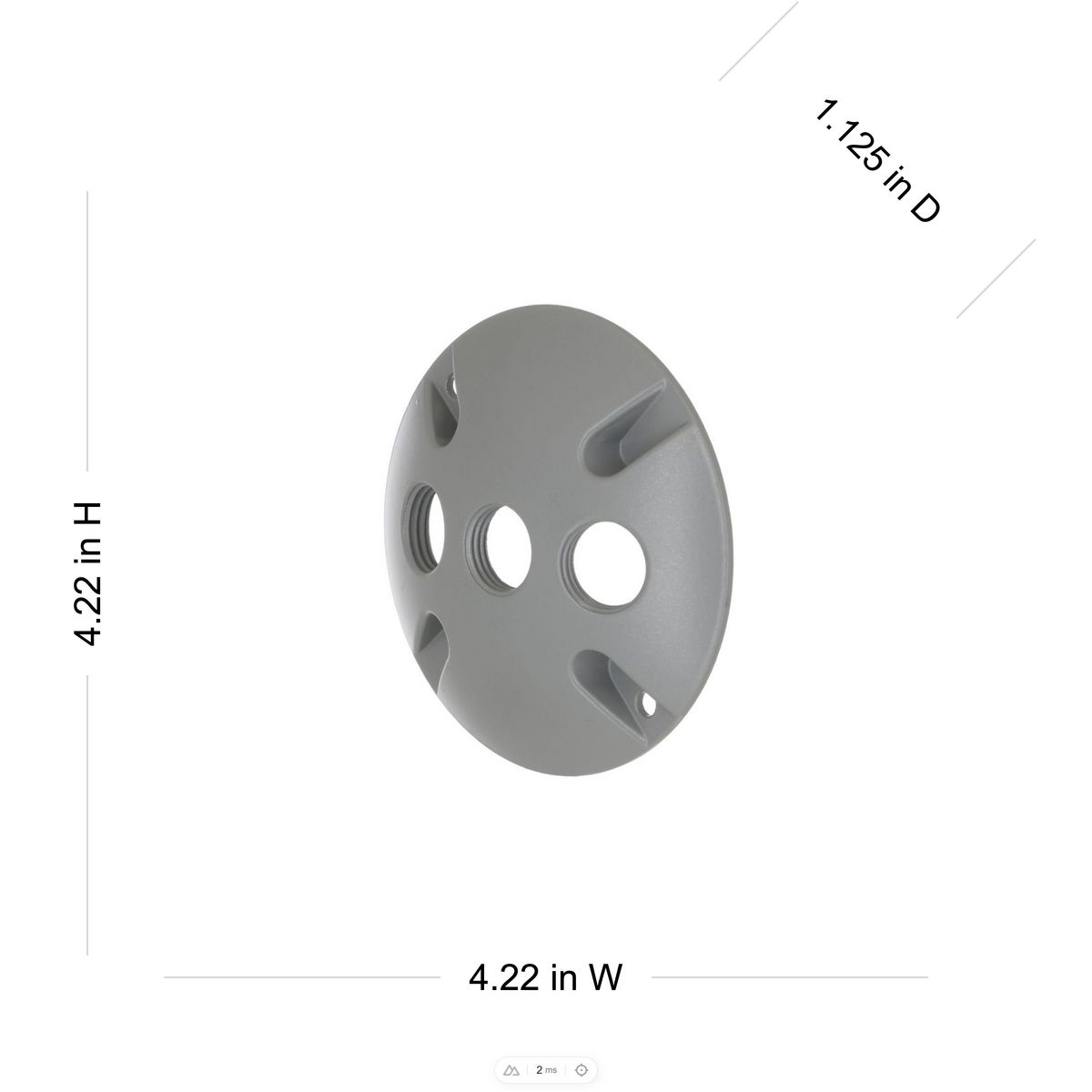 - BELL®, 5197-0, Weatherproof Cluster Cover, 3 Outlets, 1/2 in Knockout, 4-1/8 in Diameter, 4-1/8 in Length, 4-1/8 in Width, 1.094 in Depth, Round Shape, Lampholder/Cluster Cover, Surface Mounting, Die Cast Aluminum, Powder Coated, Gray