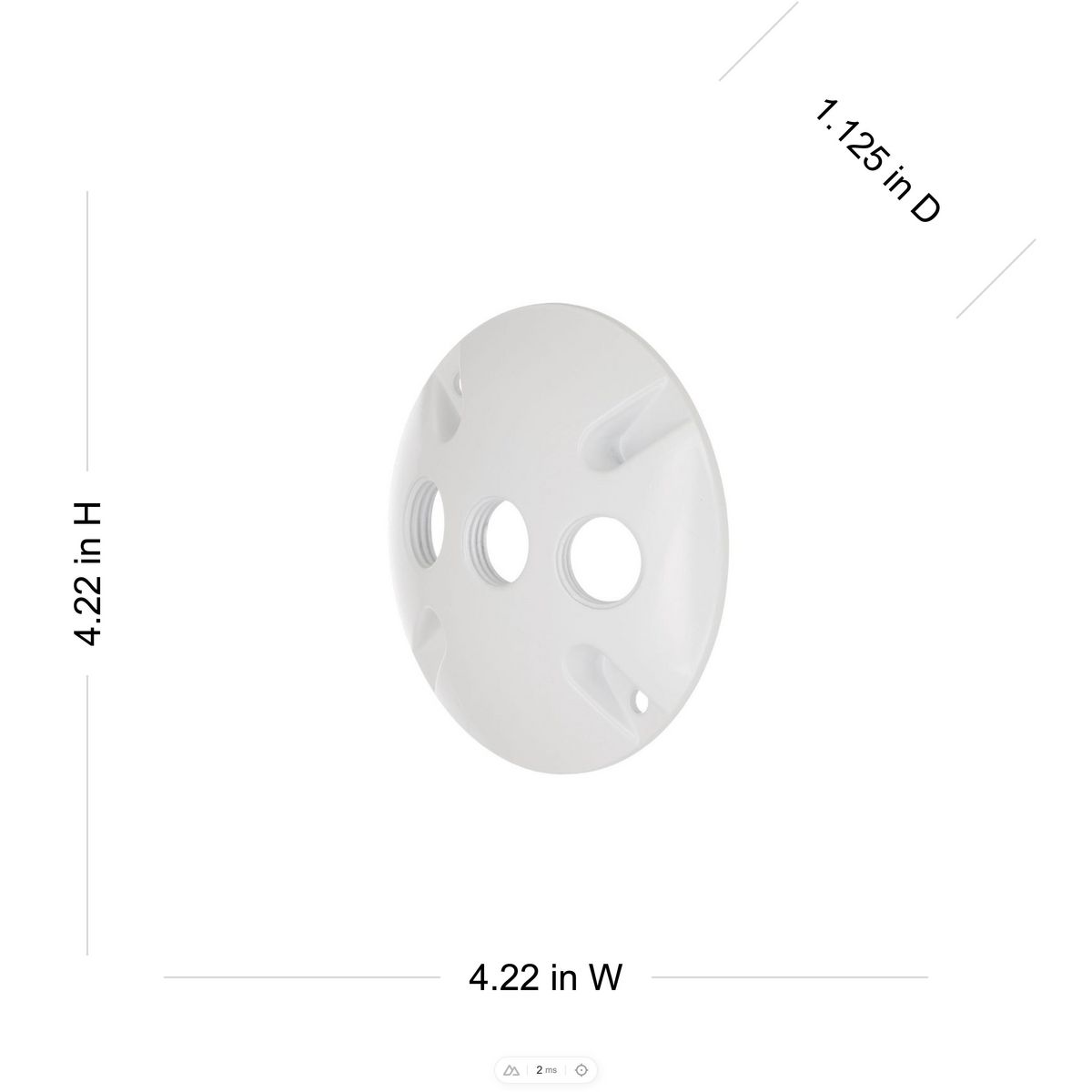 - BELL®, 5197-1, Weatherproof Cluster Cover, 3 Outlets, 1/2 in Knockout, 4-1/8 in Diameter, 4-1/8 in Length, 4-1/8 in Width, 1.094 in Depth, Round Shape, Lampholder/Cluster Cover, Surface Mounting, Die Cast Aluminum, Powder Coated, White