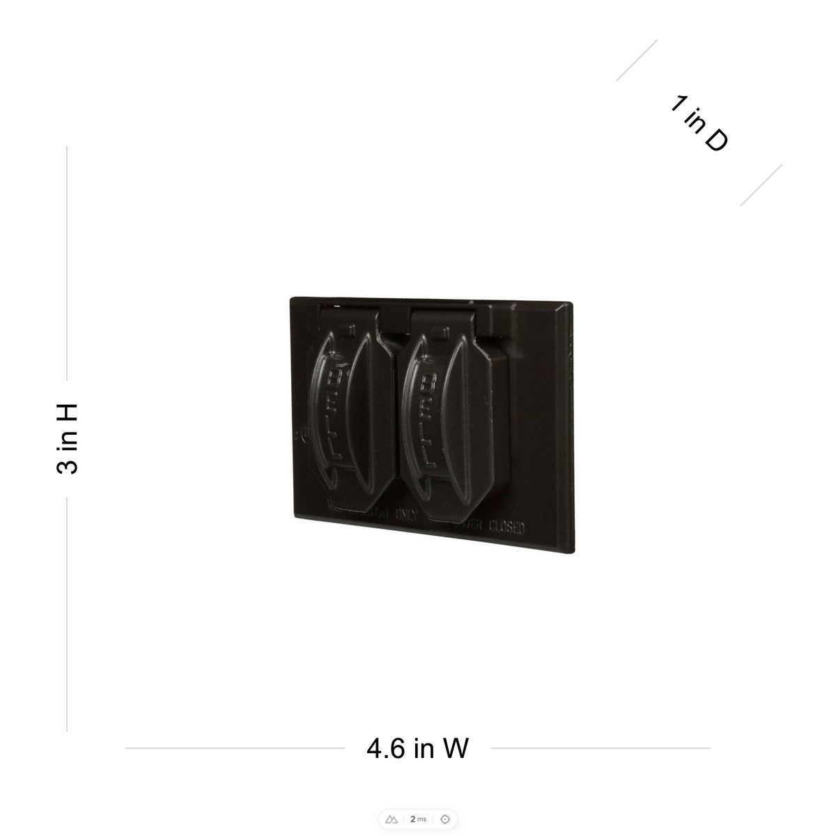 - Brand: Raco HubbellApplication: FlipColor: BronzeCountry of Origin: INFinish: Powder CoatHeight: 3 inLength: 4.562500000000000 inMaterial: AluminumSpecial Features: Duplex, weatherproof protection, device mount, self-closing lids; installation hardware, gasket, and multi-lingual instructions includedStandard: UL ListedSub Brand: BELLType: CoverWidth: 4.6 in