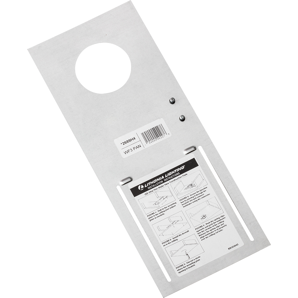 - Lithonia Lighting Pan, New Construction, For Use With: 3 in Wafer Thin LED Recessed Downlight, Specifications: Ceiling Mount, Aluminum, Matte, Silver, 19.86 in L x 6.77 in W x 2.09 in H