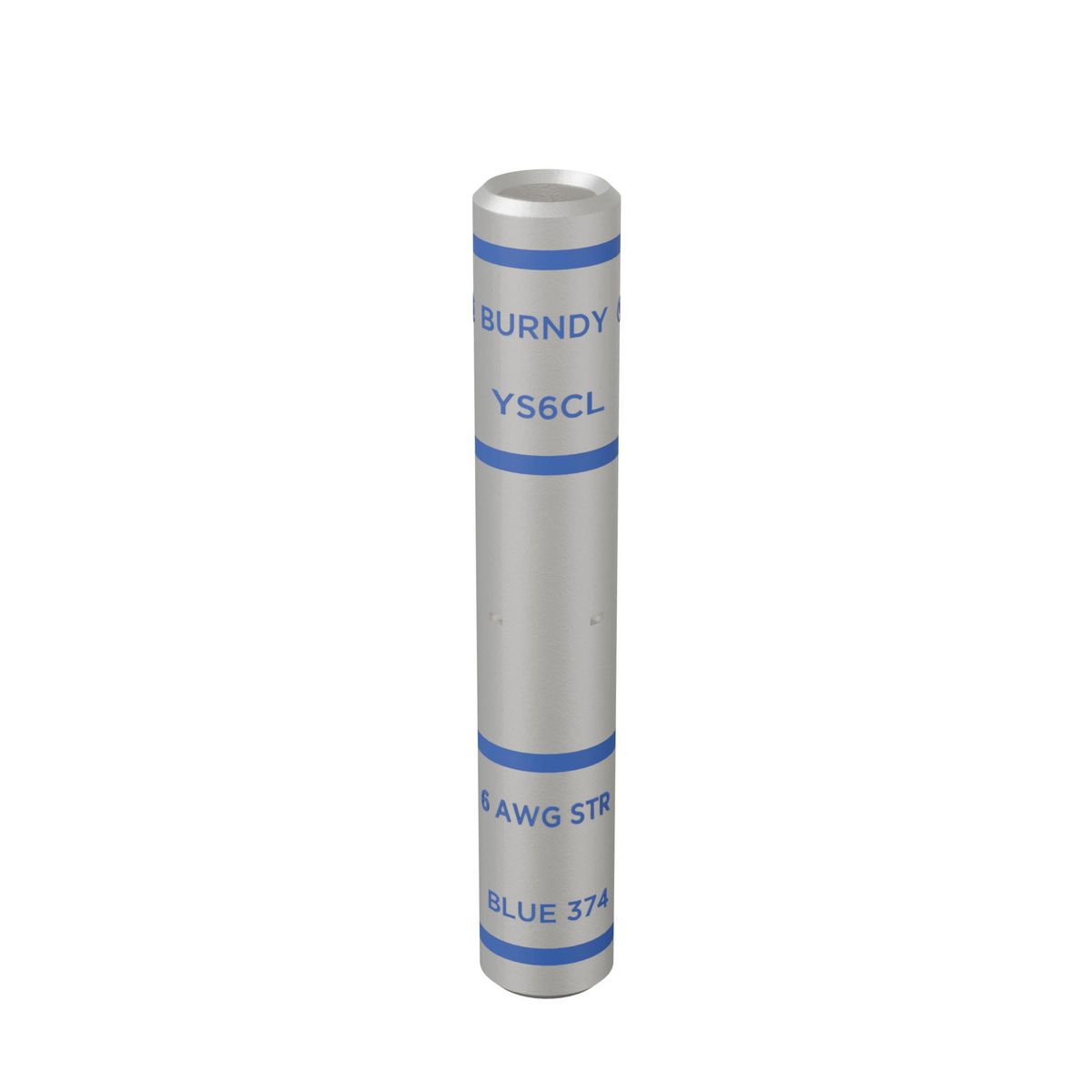 BURNDY® HYLINK™ Compression Butt Splice, Type YS-L Standard Barrel, Stranded Copper Conductor, 6 AWG Conductor, 1-3/4 in Length, Short/Standard Barrel, 0.81 in Barrel, 600 to 35000 VAC, 7/8 in L Wire Strip, 7/374 Die Index, 90 deg C, Copper, Blue, Tin Plated