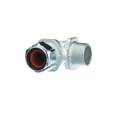 T&B® Liquidtight Cord Connector, Strain Relief, 3/4 in, Cable Openings: 1/2 to 5/8 in, S/SO/SV/ST/STD/SJ/SJO/SJT/SJTO/SVD Cable, Thread, 90 deg, Malleable Iron, Zinc Plated, Metallic, 105 deg C, 1-3/8 in L x 1-5/8 in W